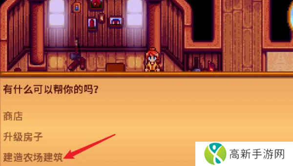 1、来到木匠店,找到【罗宾】对话,选择【建造农场建筑】,如图所示;