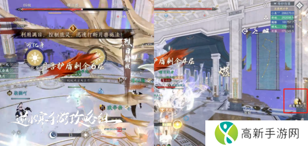 应对方法:出小怪时要注意多收集日能/月能。收集满日/月能的玩家要第一时间去化身,变身后冲向蓄力中的月兽/日兽,使用技能鹿角冲撞可以快速打破BOSS的护盾。这是个团灭点,需要注意的就是平时多收集日能和月能;BOSS蓄力时满日/月能的玩家第一时间变身击破BOSS护盾。