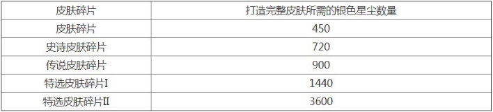 皮肤碎片的银色星尘兑换率