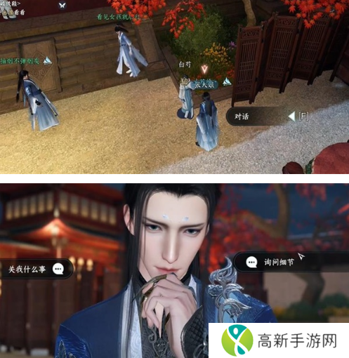 2、接着我们就在一边旁听他们的对话,然后我们加入他们的对话,在对话中我们选择【询问细节】。