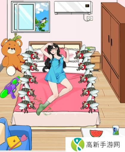 1、消灭苍蝇帮她干掉所有苍蝇这一关可以拖动壁虎、苍蝇拍、水枪、鸟到苍蝇