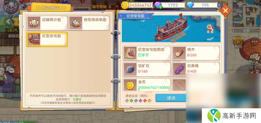 首先我们来说一下商船,目前的版本里商船只有两艘大明宝船和大型商用盖伦。我们分别来说一下两艘船的图纸怎么获得以及建造方法。