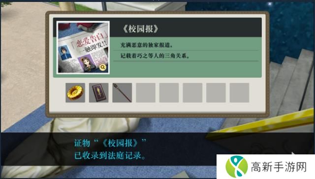 调查完被害者后,在旁边的紫红雕像下可以找到校园报。