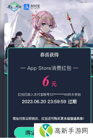 3、这个是跟支付宝一起的活动,领红包随机减,礼包0元起,最高是有六元的红包,只需要绑定支付宝就可以0元购了。
