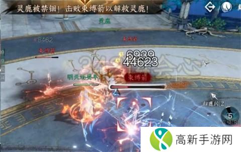2.应对方法:玩家被定住了一个人打掉束缚箭即可;提示灵鹿被禁锢后,优先集火地图边缘灵鹿身上的3根束缚箭。束缚箭很容易打掉。