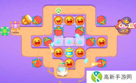 4.最后中间位置我们使用太阳花范围伤害,将伤害最大化,然后四周使用乒乓球来消灭残血兔子,轻松完成通关。