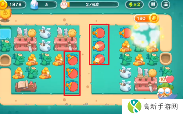 5、在第四波结束的时候,我们就得完成道具全清,否则会来不及放置炮塔,输出也会跟不上。
