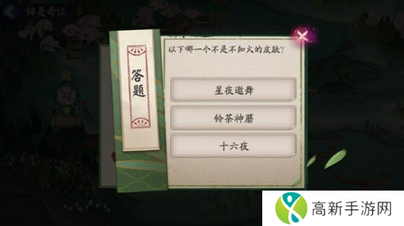 以下哪一个不是不知火的皮肤?阴阳师6月29日习题答案