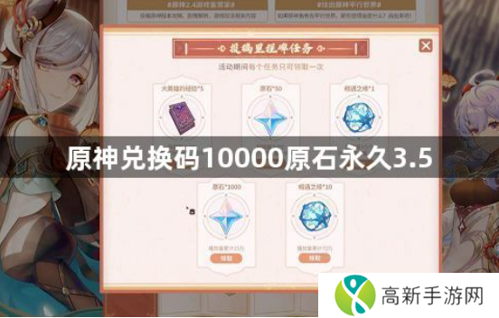 原神10000原石永久3 5兑换码有哪些 兑换码10000原石永久3 5