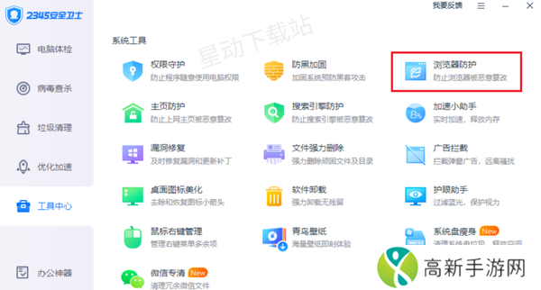当我们使用电脑下载杀毒软件时,有时候会被捆绑功能,比如杀毒软件为了保护浏览器,故意修改默认打开的浏览器,或者修改浏览器的主页,很多人为此很是苦恼,其实这个问题很简单,2345安全卫士就有专门的功能来解