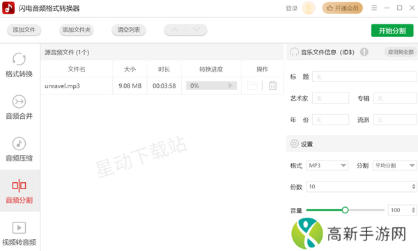 出于工作需求,一些音频工作者可能需要把音乐分成好几份,对于一些新手来说就很麻烦,完全不知道怎么处理,小编正好发现一款热门音频分割神器,可以随意将一段音乐分成好几份,那就是闪电音频格式转换器,下面小编就