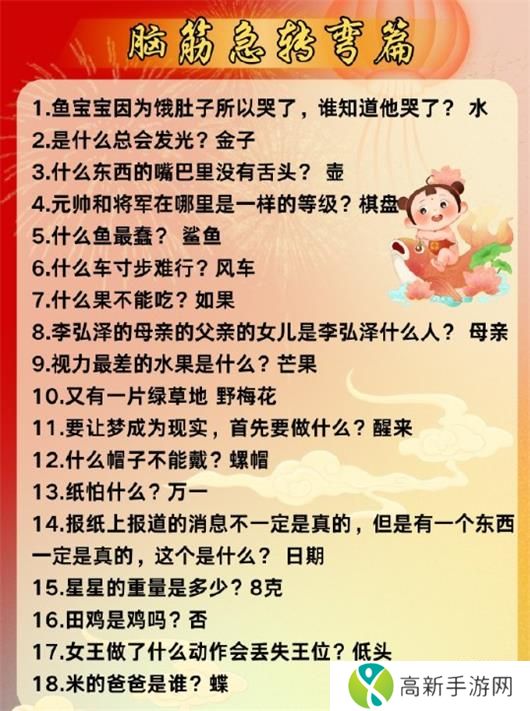 盛世芳华龙升海阙答案是什么?盛世芳华龙升海阙答题答案是什么?下面小编给大家整理了盛世芳华龙升海阙答案大全2024,快来看看吧!盛世芳华龙升海阙答案:一 盛世芳华龙升海阙答案脑筋急转弯篇:1 鱼宝宝因为