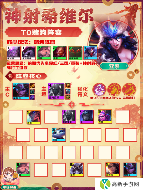 云顶之弈腥红神射怎么玩?云顶之弈腥红神射阵容怎么搭配?下面小编给大家整理了云顶之弈腥红神射阵容推荐攻略,快来看看吧!云顶之弈腥红神射阵容:1 云顶之弈腥红神射阵容组成:提莫、悠米、希维尔、刀妹 永恩、