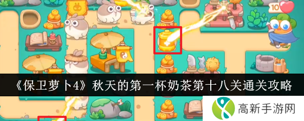 保卫萝卜4秋天的第一杯奶茶第十八关怎么通关?保卫萝卜4秋天的第一杯奶茶第18关的几个关键位置都被大道具占用了,因此我们需要正电极这种单体伤害高的炮塔,在前期就把它们都拆掉,下面小编就给大家带来秋天的第