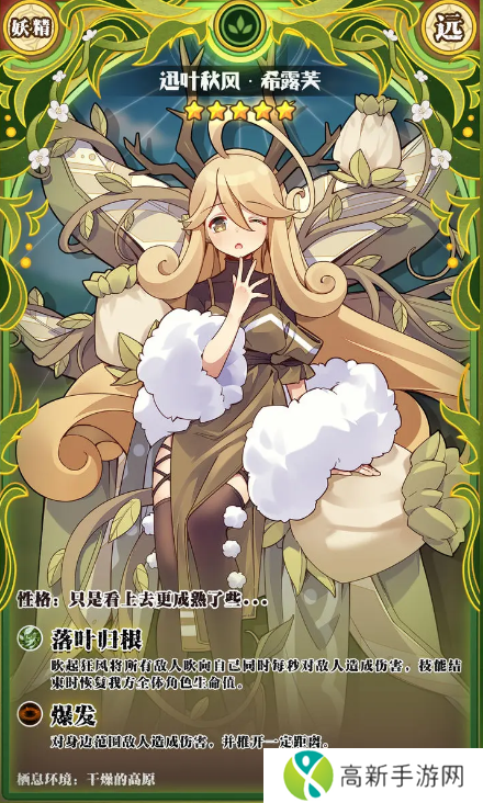 《牧羊人之心》【SP角色】登场—迅叶秋风·希露芙远古时代便已存在的风之精灵,她的存在实在过于久远,甚至就连自己也渐渐在无尽岁月的尽头迷失了。但她并不在意这些,不管是作为枯叶秋风的自己,还是曾经那个席卷