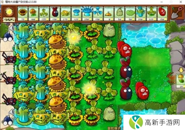 阵容见图4角水池关下豌豆喷泉和火焰南瓜头,上仙人三叶花和火爆坚果,初期就有豌豆僵尸,和普通舞王,需要承压,无法拖到豌豆喷泉阵容。大量舞王召唤僵尸又需要穿透伤害,所以上仙人三叶花,中期有3连海豚僵尸突袭