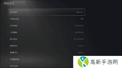 PS5:设定互联网连接->选择WiFi或者有线LAN连接 - 高级设定