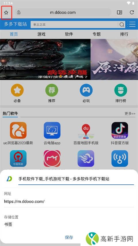 2、对于喜欢的网站可以点击下图的星星图标,可以将喜欢的网站快捷加入书签,以便用户下次直接进入页面