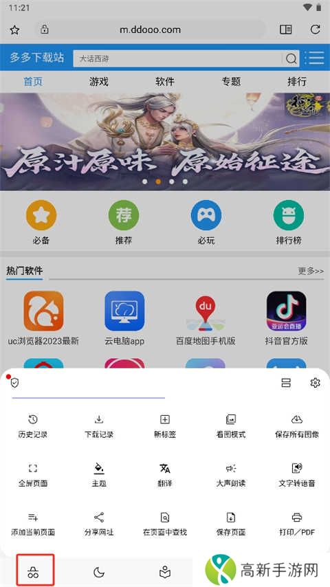 5、点击右下角的三条杠,可以对浏览器进行各种设置;