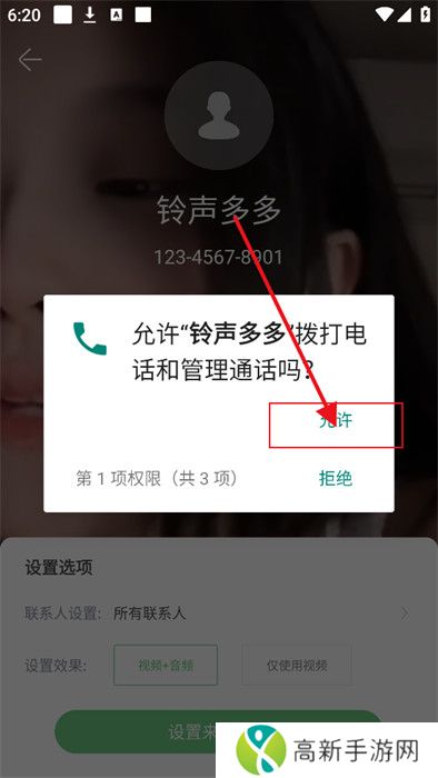 5、最后,只需要获取到设备的权限之后,就能顺利完成来电视频的设置。