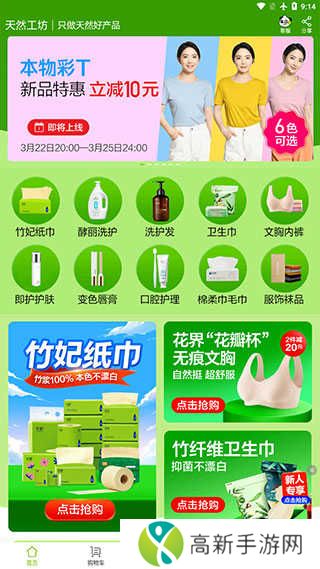 1、进入软件【首页】之后,可以看到一些常用的商品分类,如竹妃纸巾、酵丽洗护、洗护发等。
