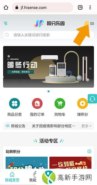 3、之后我们点击即可进入积分商城,右上角为当前账户积分数