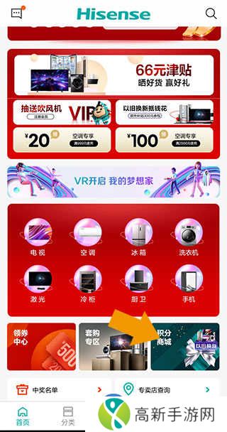 2、在首页界面往下滑,在下图位置可以找到积分商城入口