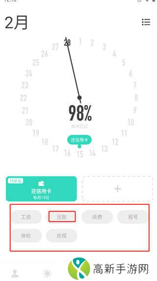 1、打开在本站下载的时光提醒app,进入首页,选择你想要提醒的事项,如还款;