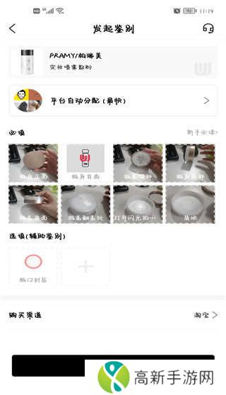 6、然后进入页面,上传化妆品的各个部位的细节图,然后点击发起鉴别。