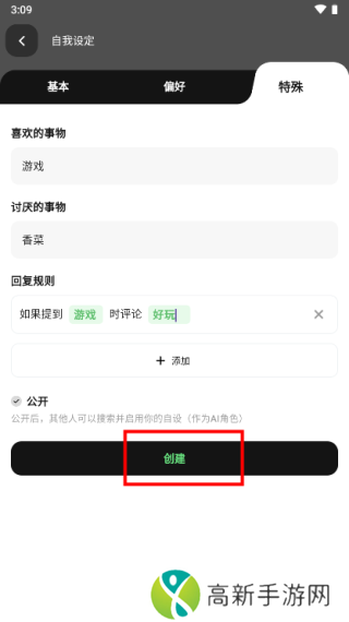 5、可选择是否公开自己的ai角色,点击创建即可。