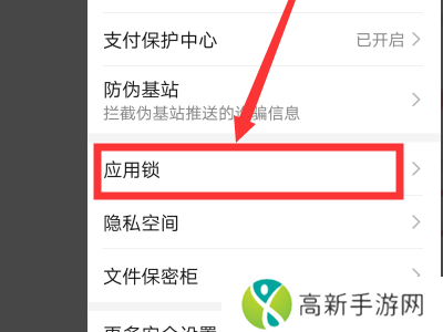 3、然后点击安全和隐私菜单进入界面,点击应用锁定。
