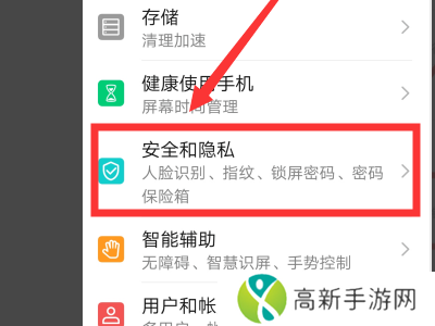 2、然后单击设置图ZI标记,进入设置界面,并找到安全和隐私菜单选项。