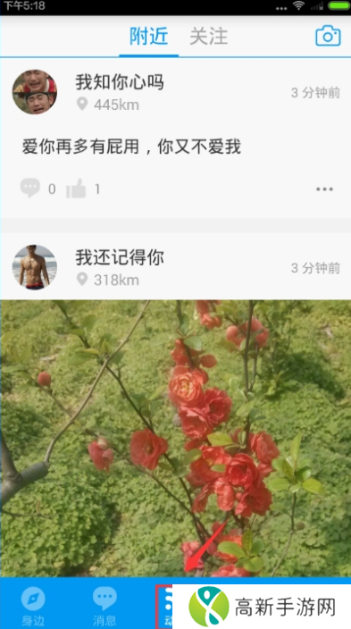 4、进入动态页面,即可查看附近朋友和你关注的朋友最新的动态。