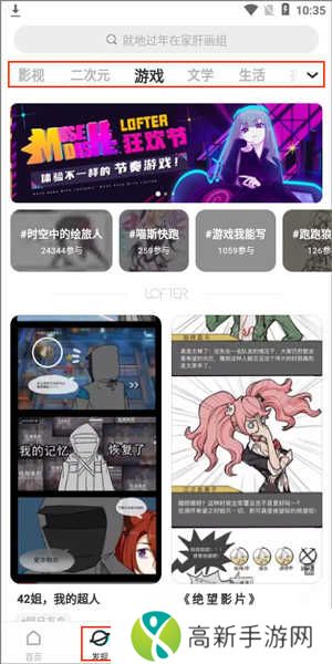 3、发现功能中玩家能够与其他的用户一同参与有关影视、生活、游戏、二次元、文学等用户感兴趣的话题;