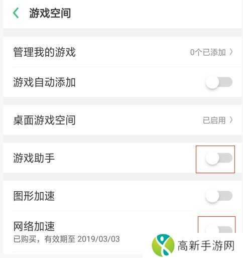 将游戏空间页面,《游戏助手》和《网络加速》滑动关闭即可。