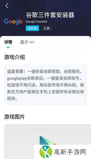 如果跳转到游戏界面后,出现了要求下载谷歌服务的提示,先不要慌,我们只需要回到刚刚搜索游戏的地方,搜索“谷歌三件套”并下载安装即可。