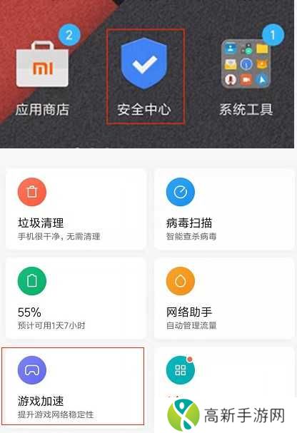 首先找到桌面上《安全中心》,进入《游戏加速》页面