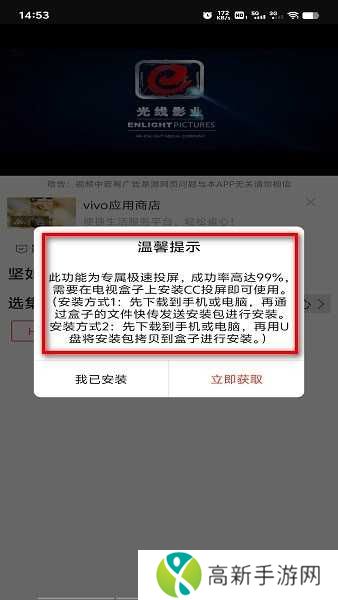 如果第一种投屏失败,就用第二个“投电视(专属)”,这个需要在电视上安装cc投屏,然后再进行投屏,稍微比较麻烦点,但是投屏成功率机会是100%。