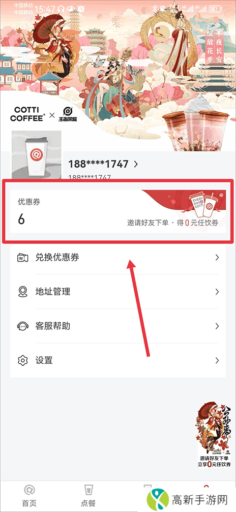 4、软件中会提供各种优惠券,在支付时可以选择使用,同时邀请好友下单还可以获得0元任饮券