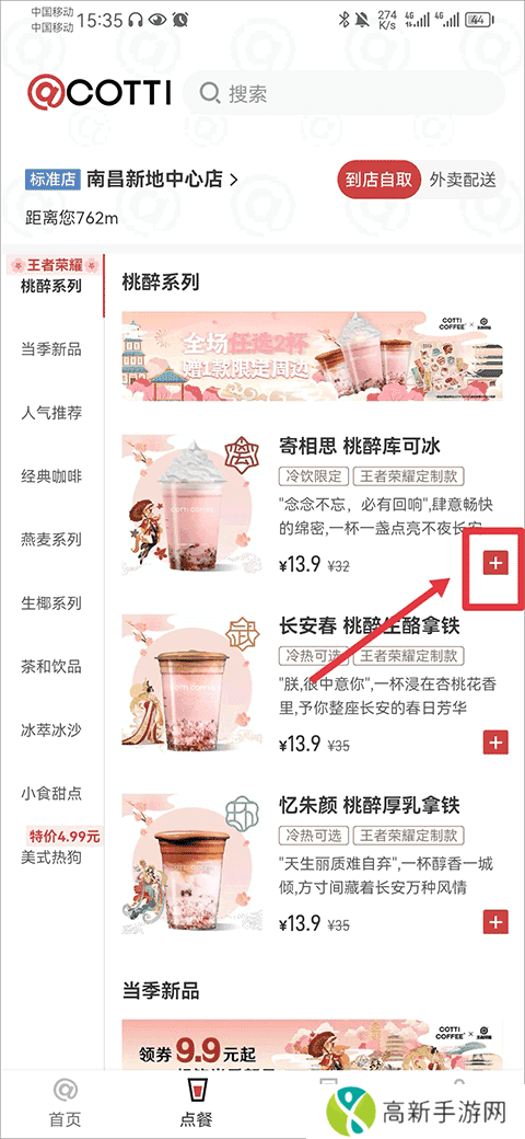 1、打开app,在点餐界面中选择喜欢的款式,并点击右边的红色加号