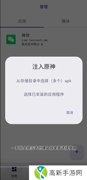 4.选择创建文件夹注入原神并选择已经安装的程序
