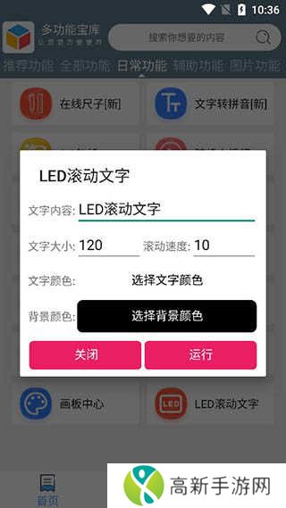 3、小编以led滚动文字为例,仅需属于文字、文字大小、滚动速度,点击运行就能获得需要的内容了;