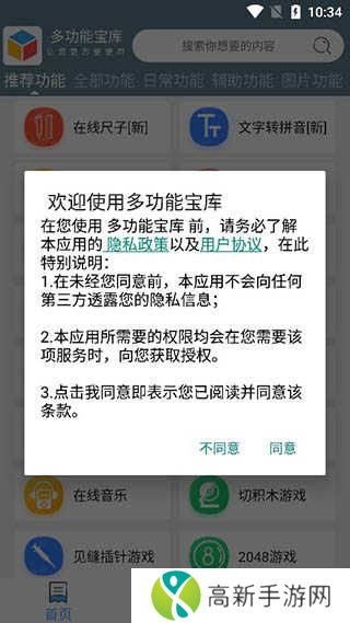 1、下载本站提供的多功能宝库app,首次使用需要同意用户协议;