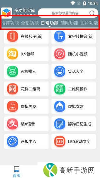 2、在首页的上方用户可以选择全部功能、日常功能、辅助功能、图片功能来挑选自己需要的;