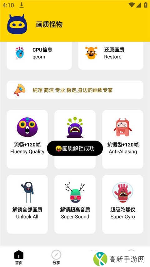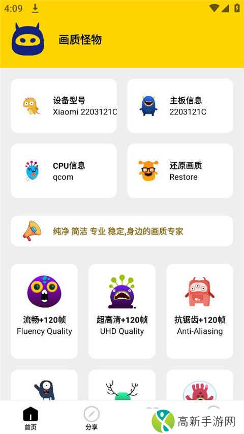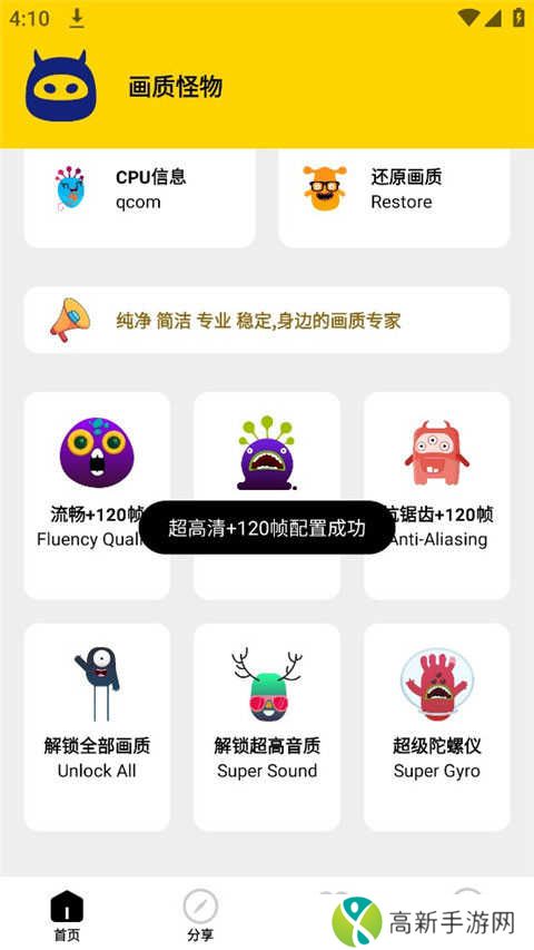 xl6666cn画质怪兽120帧目前已经支持120帧率极致画质,只需要简单的配置即可轻松畅享,体验流畅,自由度高,支持抗锯齿,直接拉满,简直不要太nice,让你不论是啥手机都能够非常流畅的进行游戏,这吃鸡还不手到擒来。同时,它超小的内存也是收获无数玩家的好评。画质怪物app除了支持修改游戏画面以外,还能够让你一键快速查看手机型号内置型号,包括:主板信息,cpu信息,也可以分享给小伙伴,有需要的玩家快来下载体验吧。