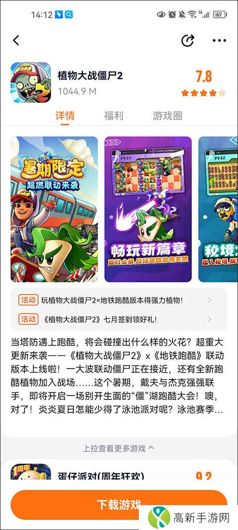 2、选中植物大战僵尸2,进入游戏介绍界面,这里有详细的攻略和游戏圈,随时都可开始游戏;