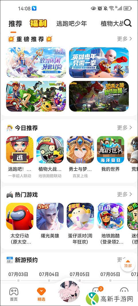 5、如果想要预约的朋友可以点击最后一个模块中的“新游预约”,选择自己想要的游戏进行预约。