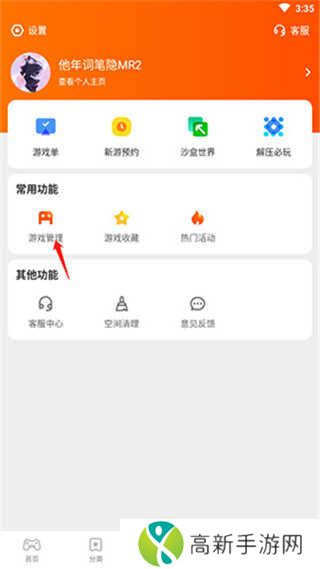 1、打开软件,点击底端的“我的”选项,然后点击“游戏管理”选项。