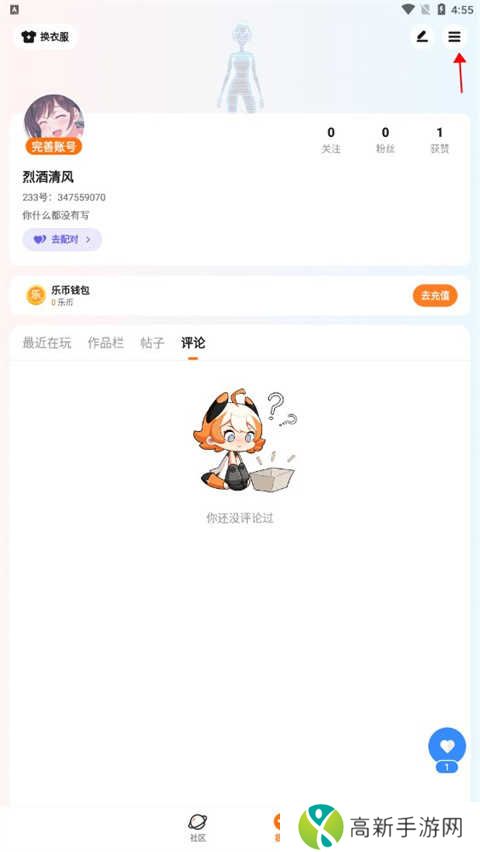 1、进入233乐园官方最新版,点击我的,点击右上方按钮所指地方;
