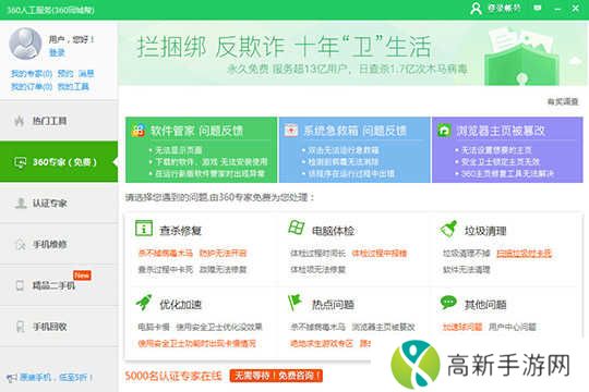 7.还是没有找到USB的答案怎么办?点击左边的360专家或认证专家,在线询问专家就可以解决烦恼了,如下图所示: